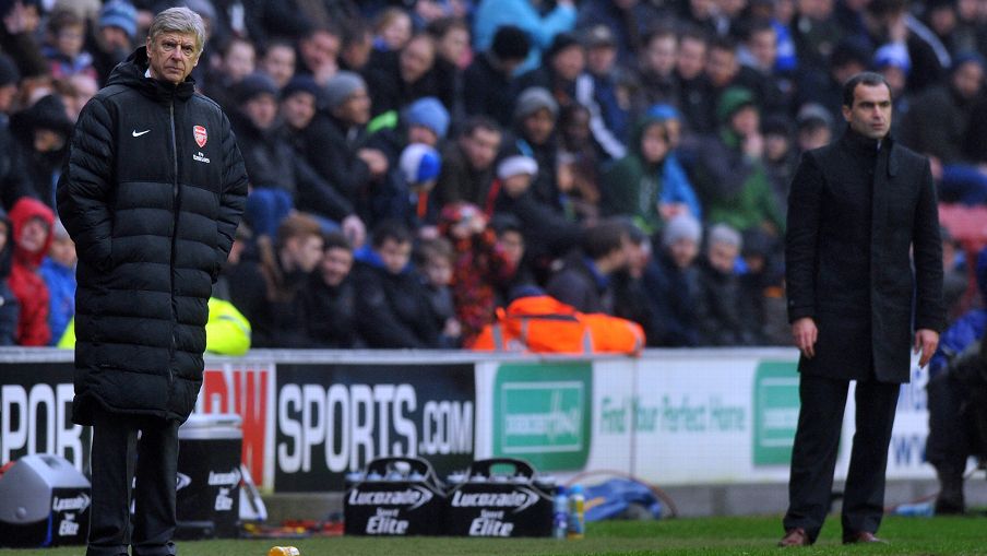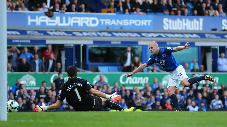 Wachezaji wa Everton wakipongezana baada ya kupata bao zao mbili za kipindi cha kwanza.